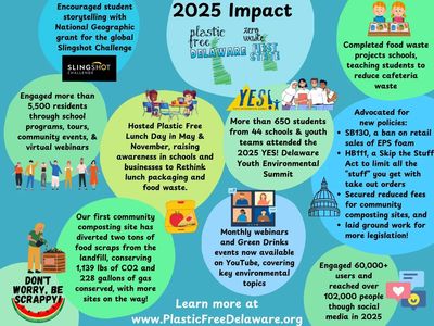 With our very sincerest thanks for your past and continued support! All of PFD's achievements are only possible with generous support such as yours. Please consider a gift to Plastic Free Delaware now so that 2026 can bring us even closer to a zero waste future with less single-use plastic pollution!